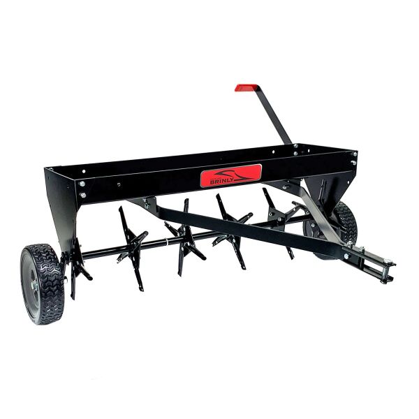 The 24 heat treated 16-gauge steel core plug spoons pull 3” soil cores of soil to the surface, allowing water, seed and fertilizer to reach your lawn’s root system and the easy-to-engage transport wheels make crossing driveways and sidewalks a breeze. Don’t settle for a less than perfect lawn!