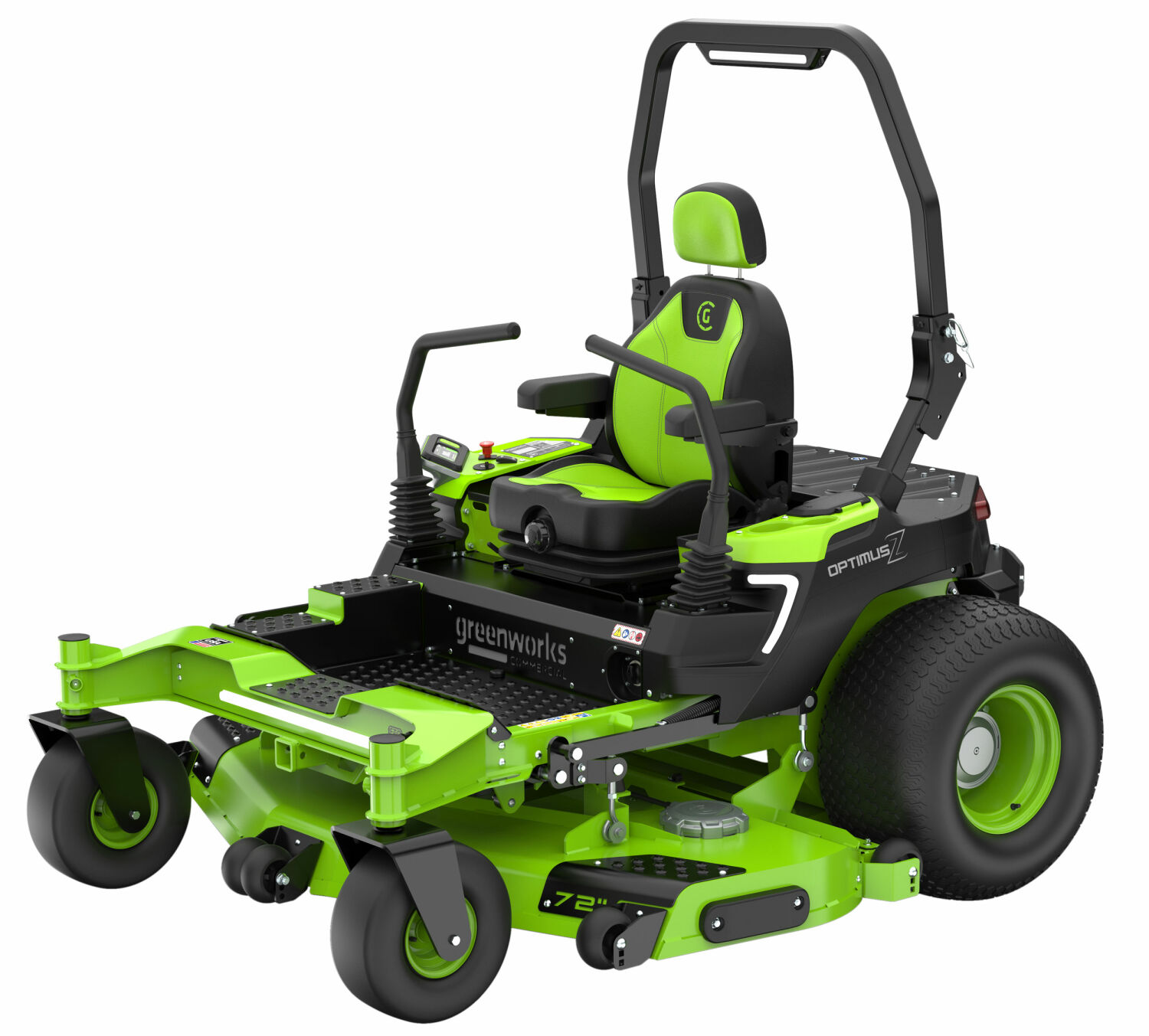 The Greenworks Commercial 36kWh OptimusZ ride-on mower includes a built in battery, using safe LFP cell technology, allowing up to 8 hours of mowing on a single charge.