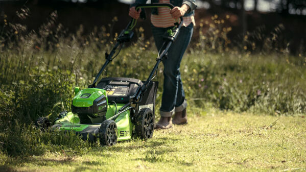 Keep your lawns looking immaculate with the GREENWORKS 60V 21" steel chassis, brushless, self-propelled, 3-in-1 lawnmower. Features a dual battery port with auto switch over, rear wheel self-propelled drive system with variable speed control, a high efficiency brushless motor with push button start, turbo function for tougher grass and improved lift when needed, Smart Cut technology (which automatically adjusts the blade speed to meet cutting conditions), on board LED indicator, easy fold aluminium handle and single lever height adjustment for the perfect cut.