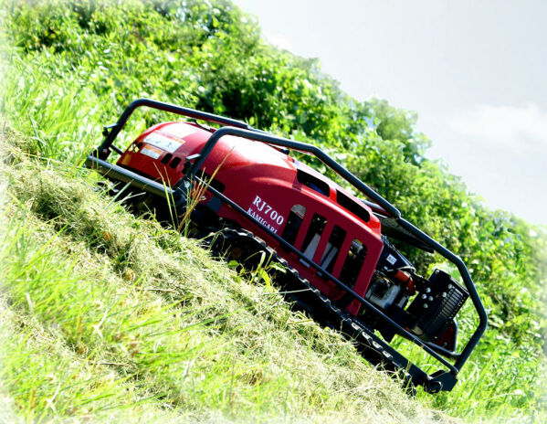 The RJ705 is a tracked remote-control mower designed for steep, hazardous and hard-to-access terrain. With a 570cc Briggs & Stratton Vanguard engine supported by dual 750W brushless electric motors, it offers powerful cutting performance while maintaining exceptional stability. Its remote-control drive system allows the operator to work safely from a distance, even on slopes up to 45°.